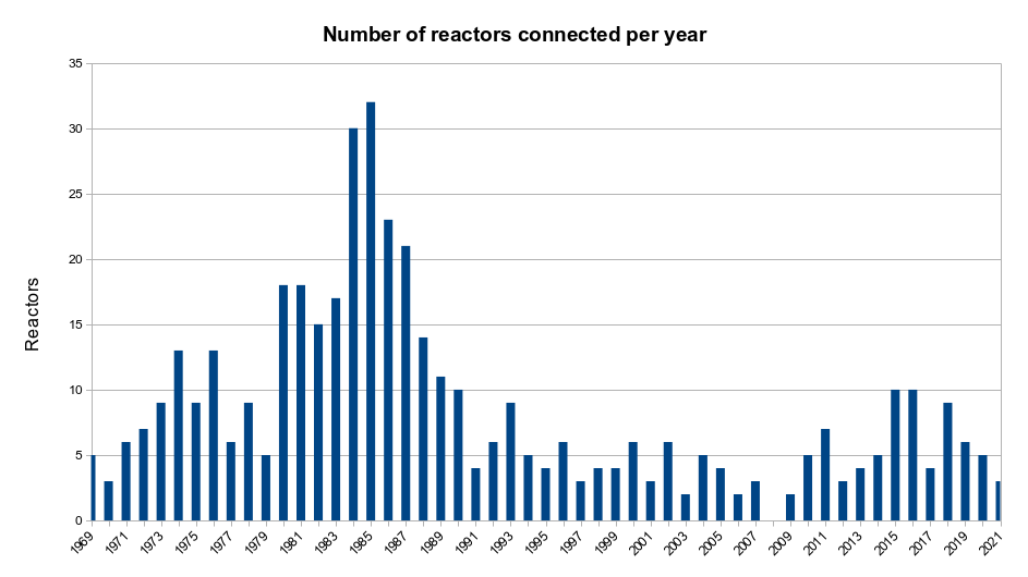 In addition, the global trend is clear, and new nuclear builds have fallen to a tenth of what they were in 1985: