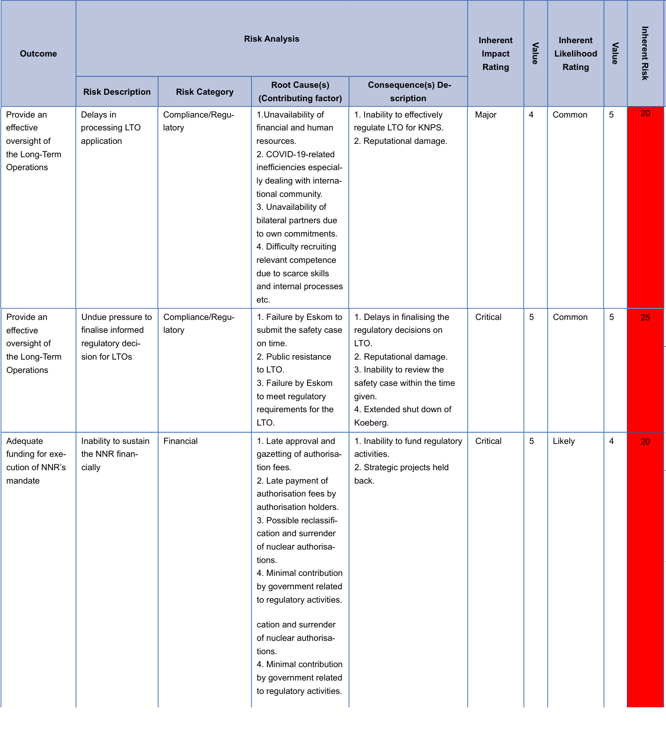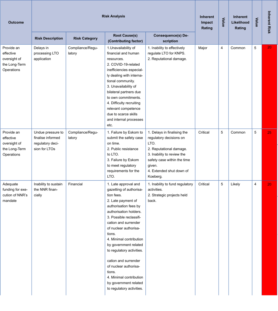 It is of interest that subsequent to Becker writing this email, the NNR submitted a report to parliament, which included a risks register which described a very similar concern: “Undue pressure to finalise informed regulatory decision for LTO”. (The life extension is also referred as the Long Term Operation, or LTO.) This risk was rated at an unacceptable level, hence highlighted in red, and no adequate mitigation steps were listed.